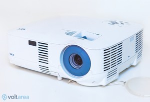The nec vt595 2000 lumens projector on a crystal edge black screen.