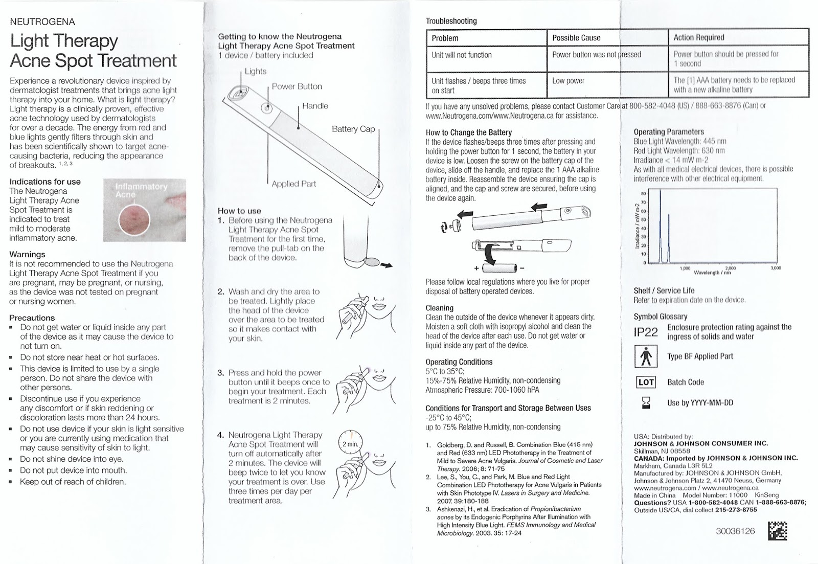 The neutrogena light therapy acne spot treatment is indicated to treat mild to moderate inflammatory acne.
